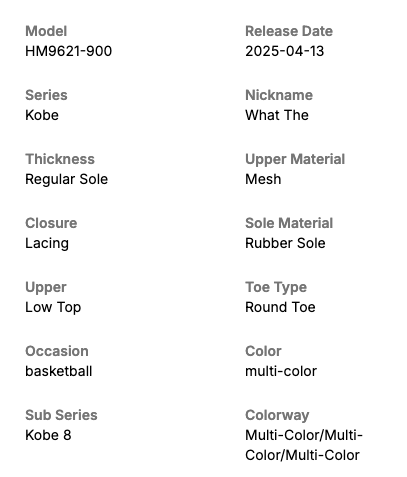 Returning Summer 2025, the Nike Kobe 8 Protro “What The Kobe” remixes nearly 30 Kobe 8 colorways into one unforgettable shoe. This mismatched masterpiece features unique left and right designs, boasting vibrant colors and materials. A tribute to Kobe’s legacy, it’s a must-have for collectors and fans alike.